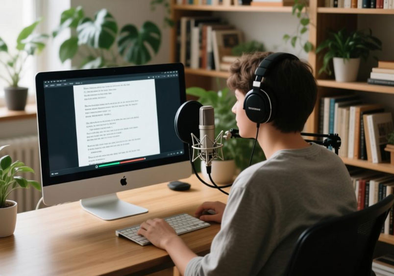 检查录音环境是否安静,关闭风扇、空调等噪音源;使用防喷罩减少爆破音;后期可用降噪软件。